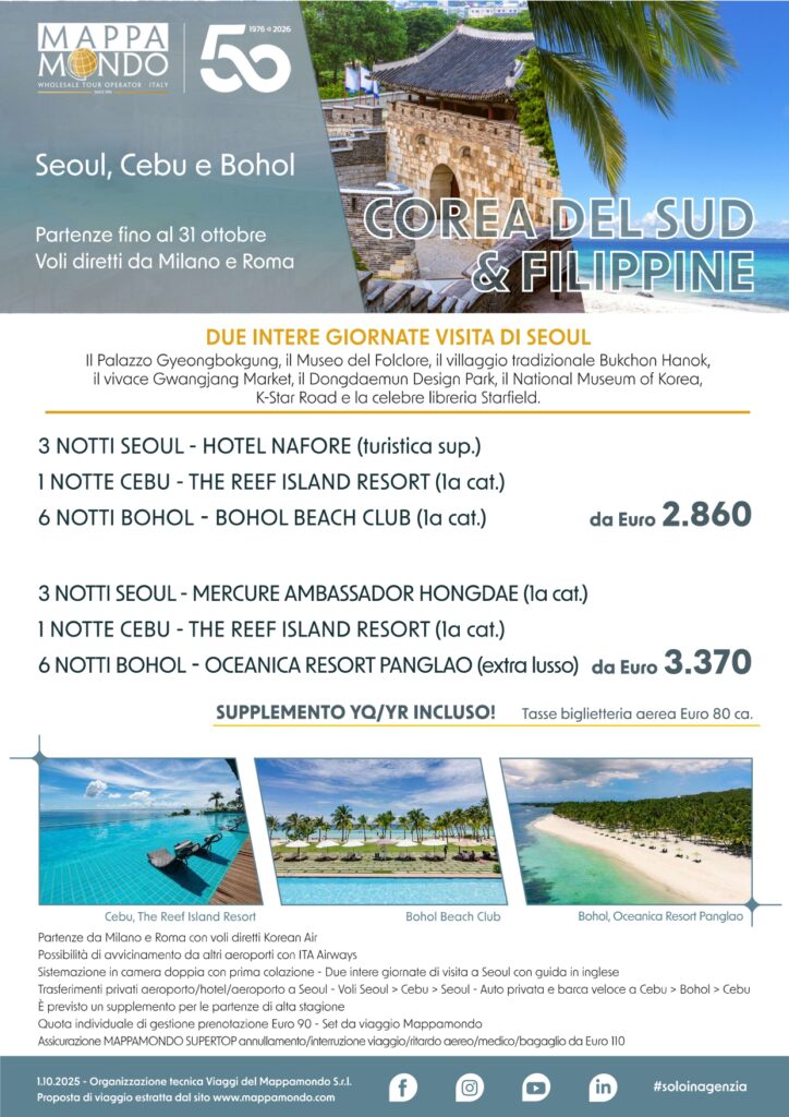 Un viaggio unico che unisce il fascino della Corea del Sud alle meraviglie naturali delle Filippine. Un itinerario completo, pensato per chi desidera vivere un’esperienza autentica tra cultura, modernità e relax.