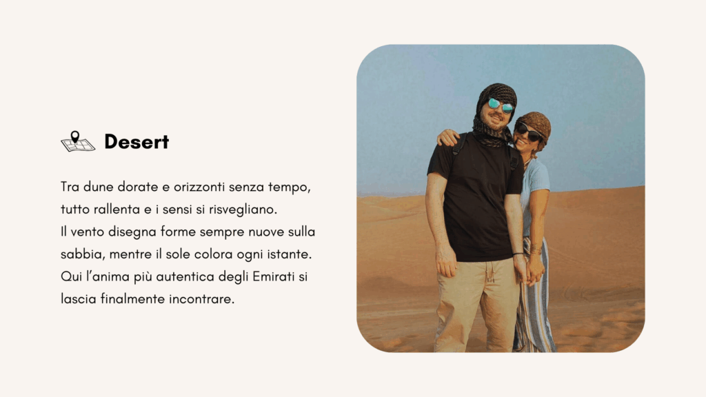Mattinata libera, poi nel pomeriggio inizia una delle esperienze più iconiche degli Emirati: